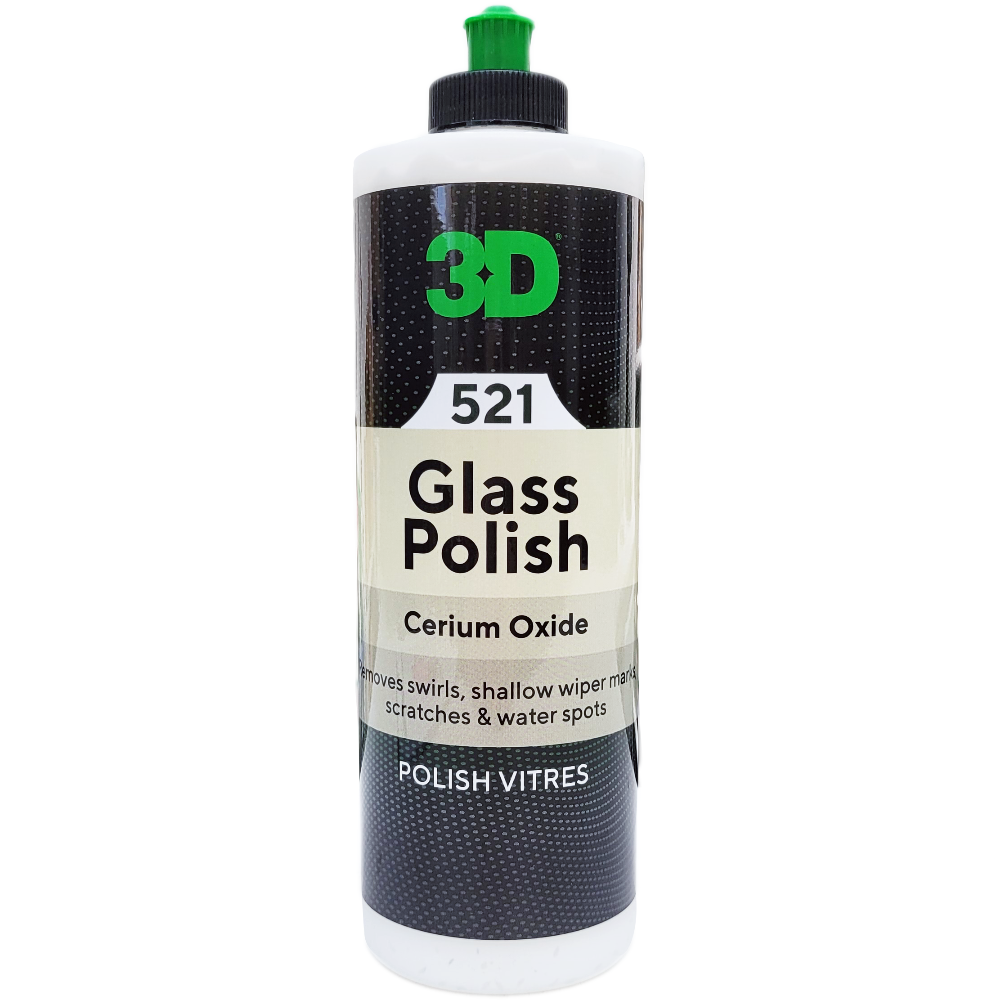 O 3D Glass Polish é um polidor de vidros à base de óxido de cério, desenvolvido especificamente para restaurar a transparência e a visibilidade dos vidros automóveis. A sua fórmula profissional remove eficazmente riscos ligeiros, marcas de escovas, redemoinhos e manchas de água mineral, devolvendo ao vidro um aspeto limpo e praticamente novo.